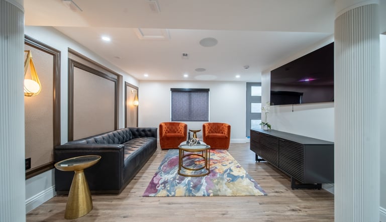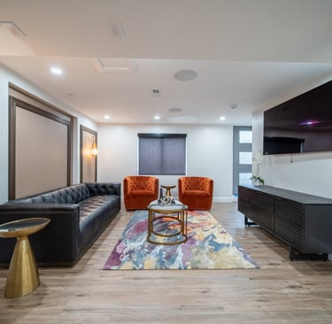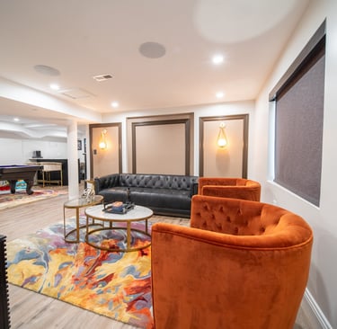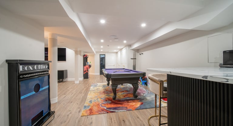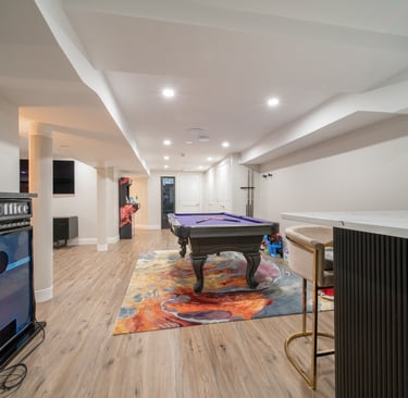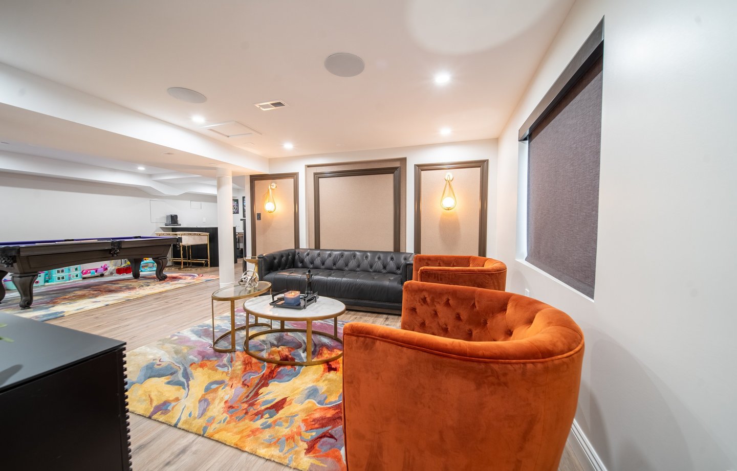 This lounge offers a sophisticated recreational space. A central pool table encourages social interaction, complemented by refined seating and ambient lighting. The design emphasizes comfort and elegance.