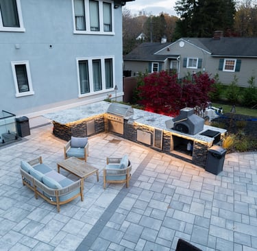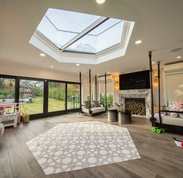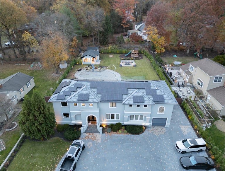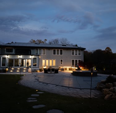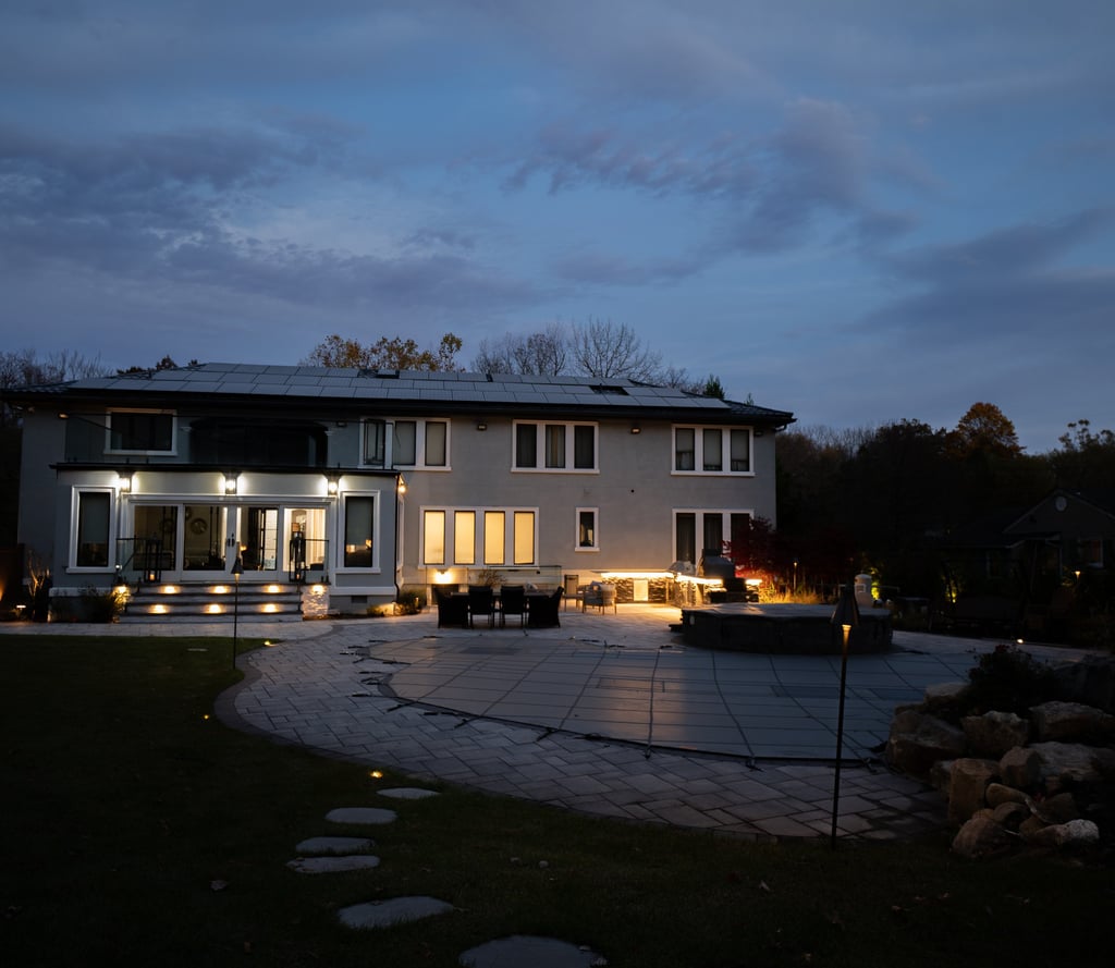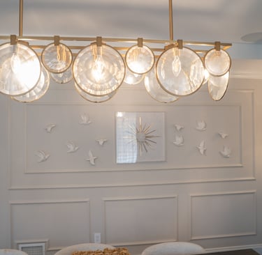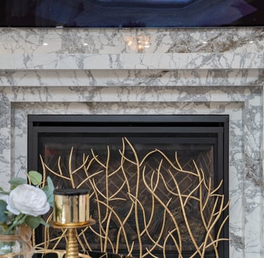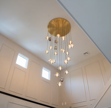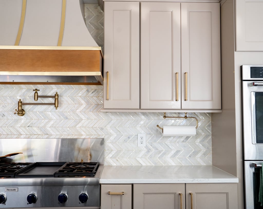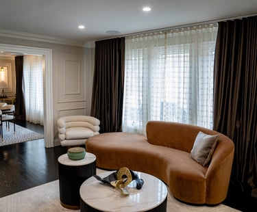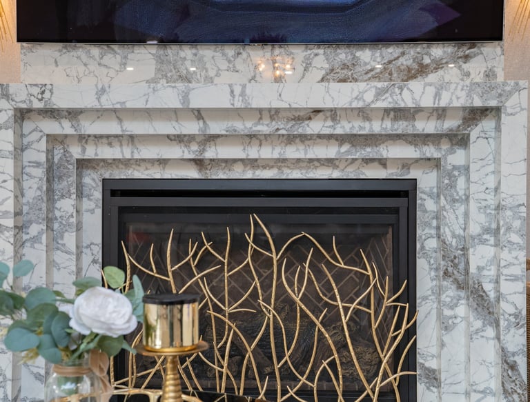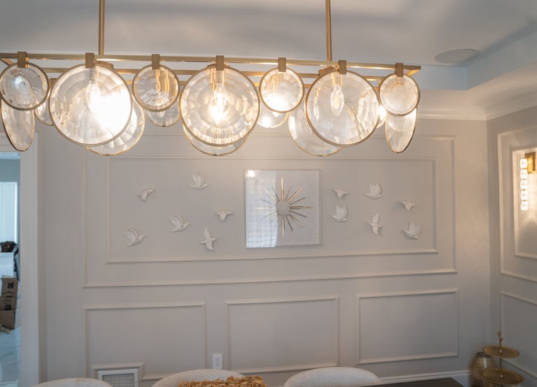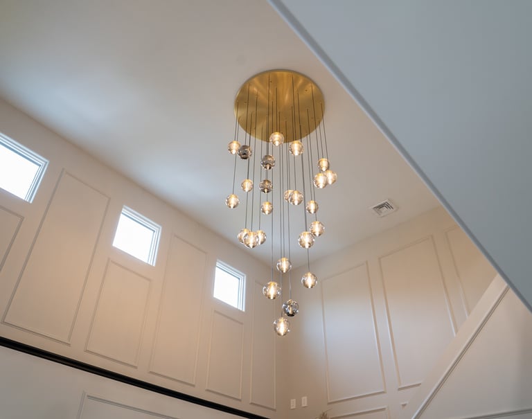 This elegant two story home features a grand circular driveway, a light exterior with a dark roof, and a welcoming arched entryway. Large windows and manicured landscaping enhance its curb appeal, while the spacious backyard offers plenty of room for relaxation and recreation. The cozy lounge offers a sophisticated recreational space. A central pool table encourages social interaction, complemented by refined seating and ambient lighting. The design emphasizes comfort and elegance. The elegant kitchen blends timeless sophistication with modern functionality. Custom ivory cabinetry, brushed brass accents, and a waterfall marble island create a refined focal point, while layered lighting and warm oak flooring add depth and warmth. The result is a polished yet inviting space designed for both everyday living and effortless entertaining.