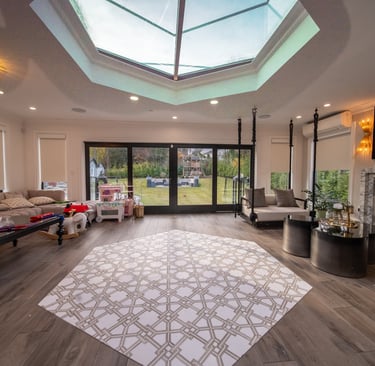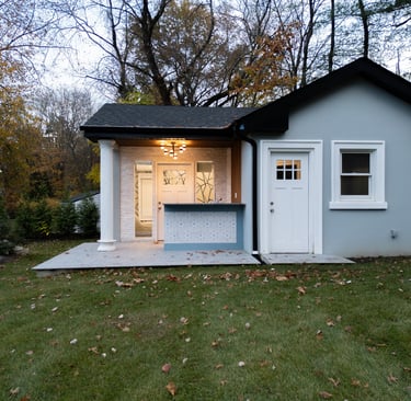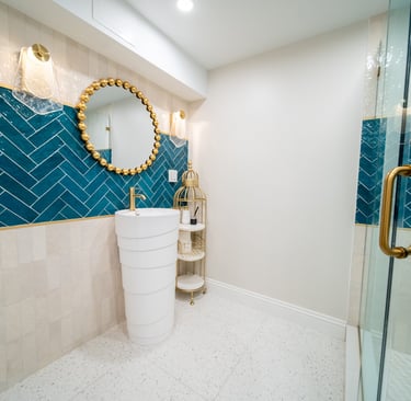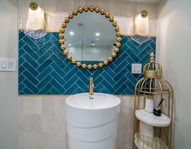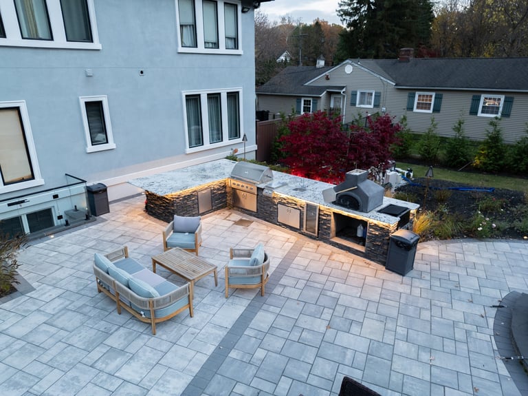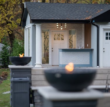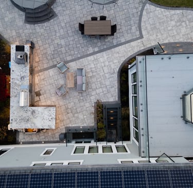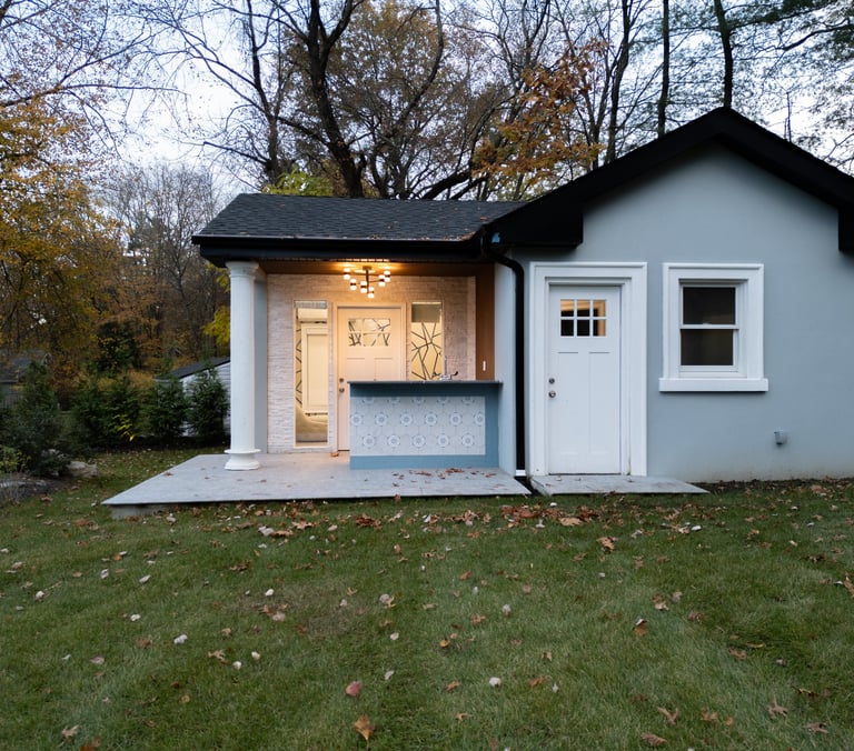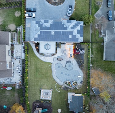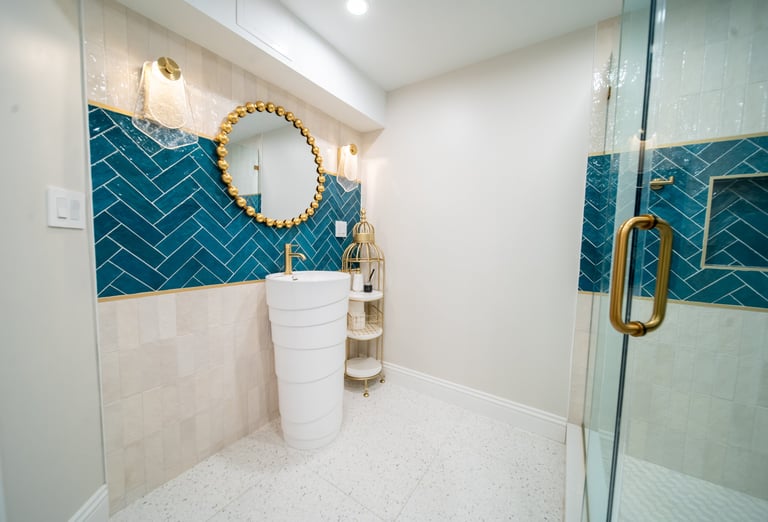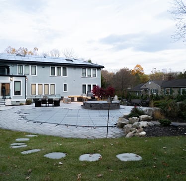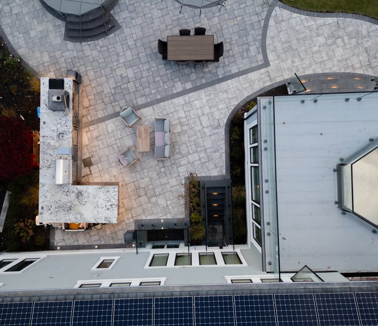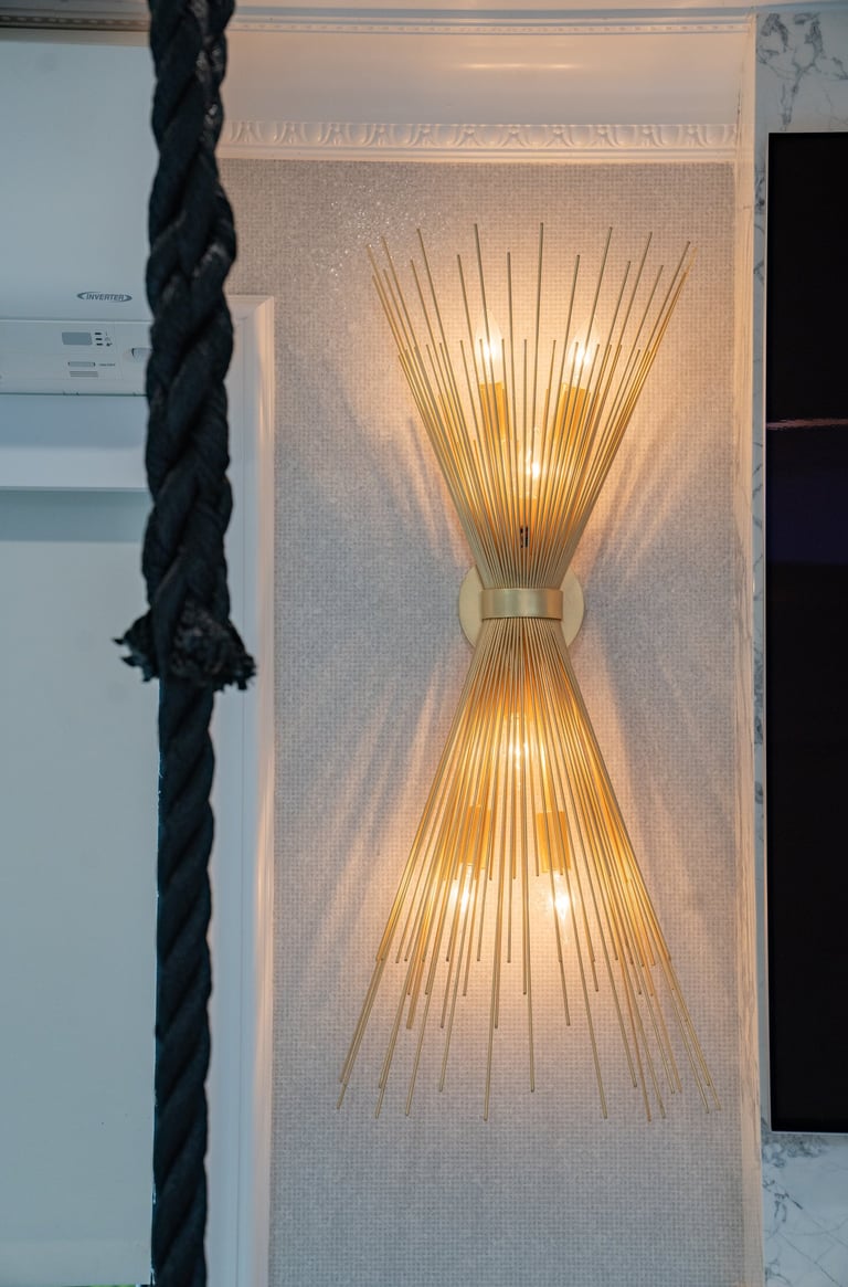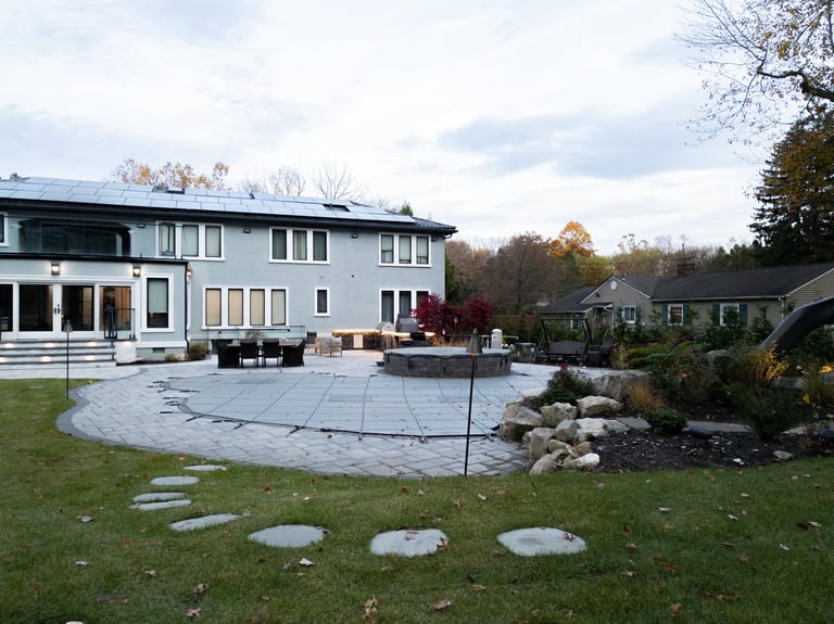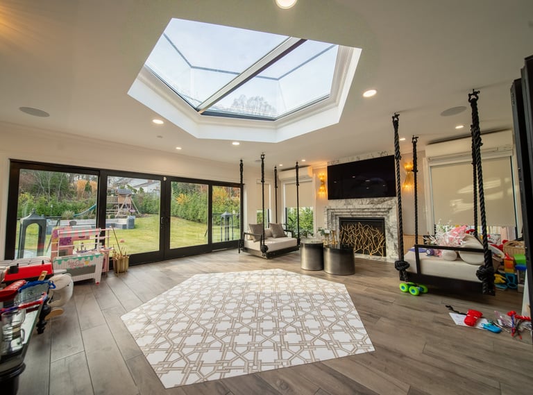 This elegant two story home features a grand circular driveway, a light exterior with a dark roof, and a welcoming arched entryway. Large windows and manicured landscaping enhance its curb appeal, while the spacious backyard offers plenty of room for relaxation and recreation. The cozy lounge offers a sophisticated recreational space. A central pool table encourages social interaction, complemented by refined seating and ambient lighting. The design emphasizes comfort and elegance. The elegant kitchen blends timeless sophistication with modern functionality. Custom ivory cabinetry, brushed brass accents, and a waterfall marble island create a refined focal point, while layered lighting and warm oak flooring add depth and warmth. The result is a polished yet inviting space designed for both everyday living and effortless entertaining.